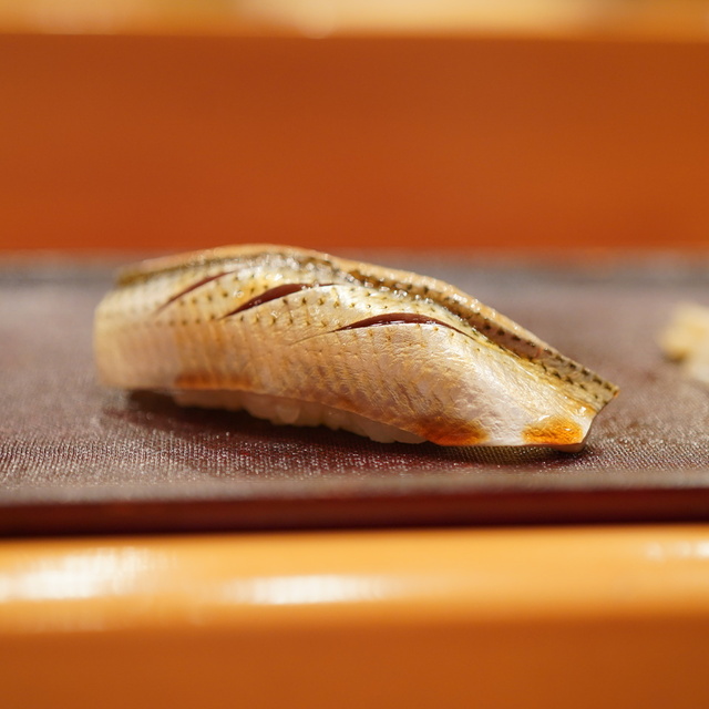 A wooden refrigerator stands out in the simple interior, warmed by the texture of the wood. At 5:30 p.m. on a Saturday, there was only one customer in front of us. There does not seem to be a set turnover time, and the course begins with each reservation. On this particular day, the restaurant was fully booked, so it would be better to make a reservation. The course started with 8 snacks and 10 pieces of nigiri, which is just the right amount. The unotan (sea urchin), specialty grilled abalone, and grilled conger eel are high quality snacks, and they are well mixed and varied to avoid a monotonous taste. Nigiri is basically seasoned Edomae style. I had the sense that the flavor of the ingredients was used to enhance the consistency of the rice, which is probably the reason why the restaurant has been recognized by many people, including a Michelin award. The rice is soft and easy to put together even though the graininess of the rice is firm. The vinegar is also effective.
